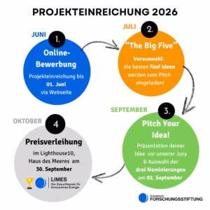 Unsere Fachjury wählt bis zum 1. Juli 2026 die fünf überzeugendsten Einreichungen aus. Diese Projekte werden direkt benachrichtigt und zum Pitch-Event im September eingeladen. - „Pitch Your Idea“: